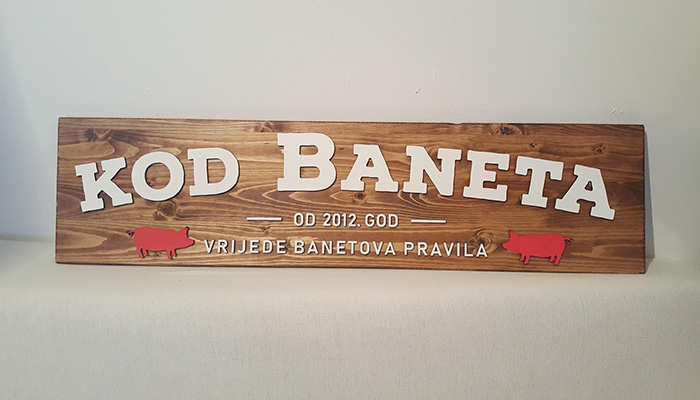 Poklon za konobu od drvenog natpisa izrezanog laserom te zaljepljenog na deblju drvenu podlogu