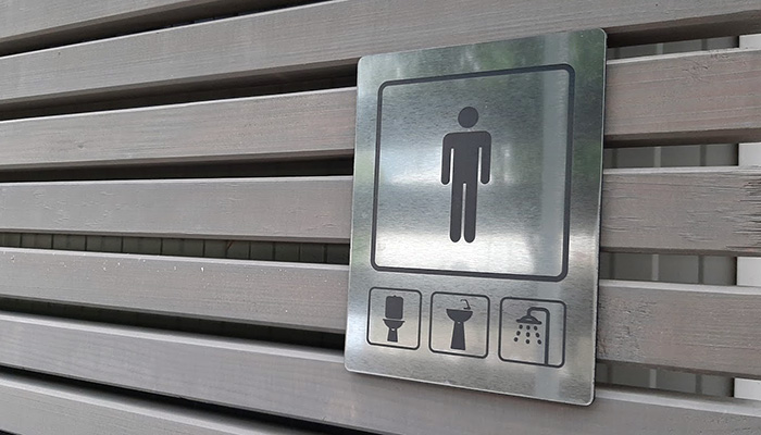 Napisna ploča za oznaku sanitarnog čvora izrađena graviranjem na dvoslojnoj plastici