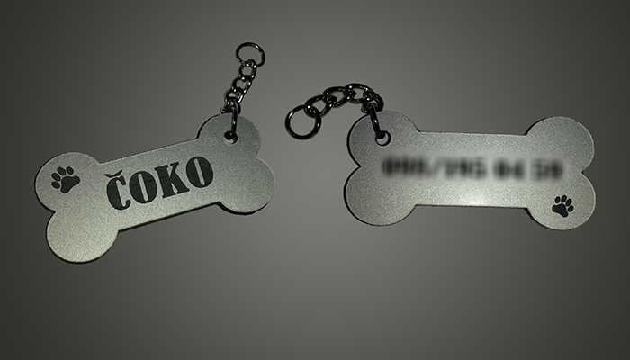 Privjesak za pseću ogrlicu izrađen graviranjem u dvoslojnoj plastici