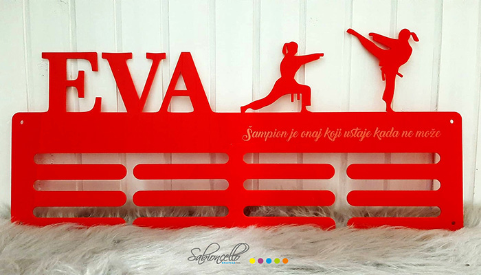 Personalizirani nosać za medalje izrađen laserskim rezanjem iz pleksiglasa