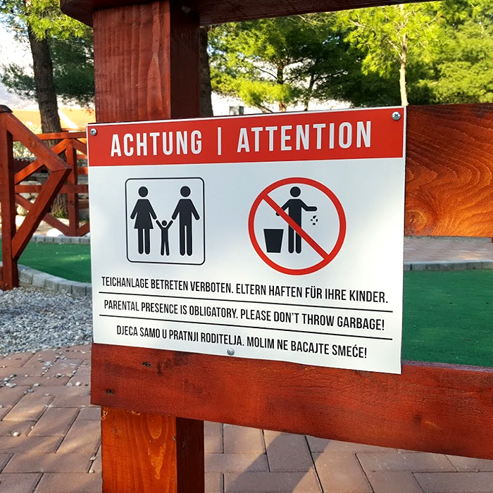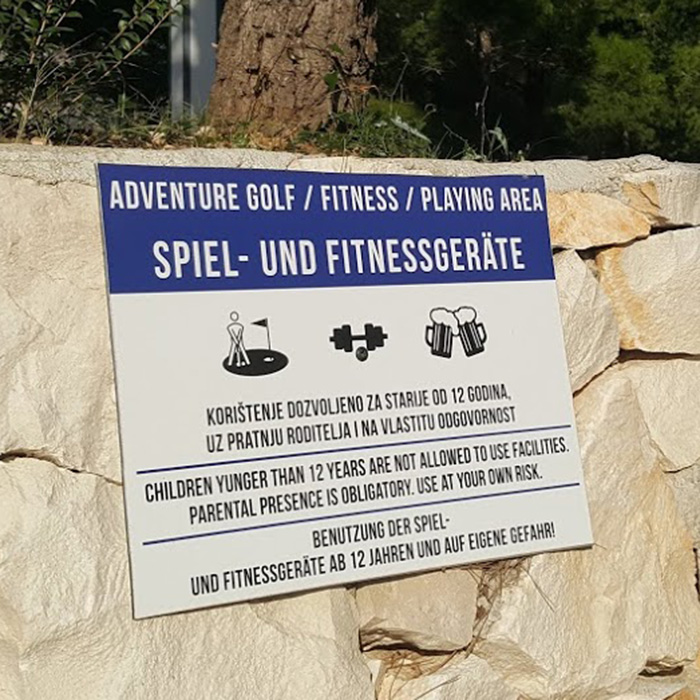 Razne vrste natpisnih ploča za sportska i dječja igrališta, bazene s ikonama i pravilima ponašanja
